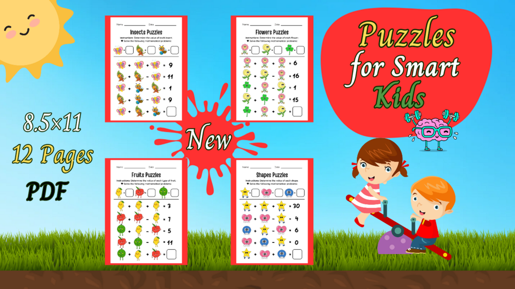Introducing "♥Puzzles for Smart Kids♥" - a set of 12 captivating worksheets that will spark children's curiosity and critical thinking skills for preschoolers!