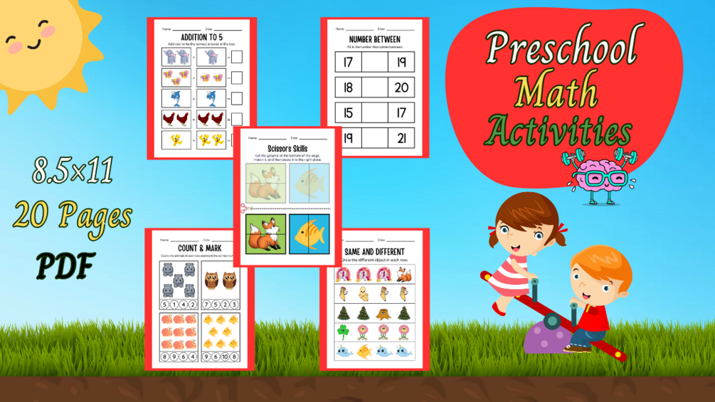_ 🌈 Immerse yourself in a world of interactive learning where numbers come to life, imagination flourishes 🌟, and math concepts are joyfully revealed. From addition and subtraction, to count & mark ✏️, numbers between, matching 🎯, same and different, puzzles 🧩 and scissors skills ✂️, these activities provide endless engagement. Promote logical thinking, fine motor skills, creativity 🎨, and problem-solving. Prepare your preschool children for a wonderful journey of intellectual development 📚. Let their imaginations soar as they embark on these captivating math adventures! 🚀